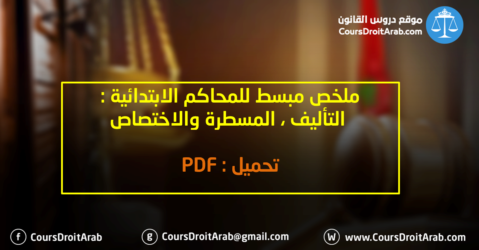 ملخص مبسط للمحاكم الابتدائية التأليف المسطرة والاختصاص